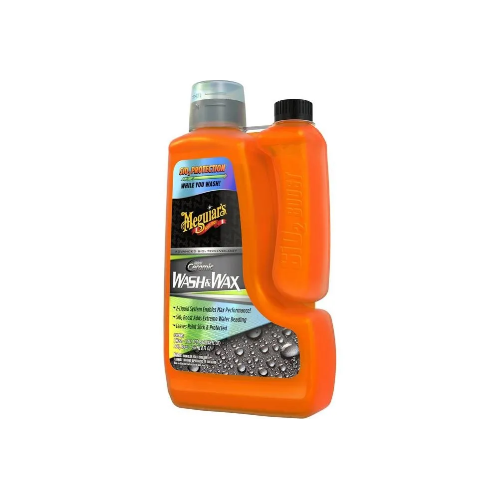 Meguiar´s Hybrid Ceramic Wash & Wax es un champú que nos bridna la combinación de dos productos. Por un lado tendremos un champú de alta lubricación con baja espuma, ayudándonos a eliminar la suciedad más persistente y por otro lado Hybrid Ceramic SiO2, un aditivo que nos aporta una repelencia al agua superior y protección instantánea.